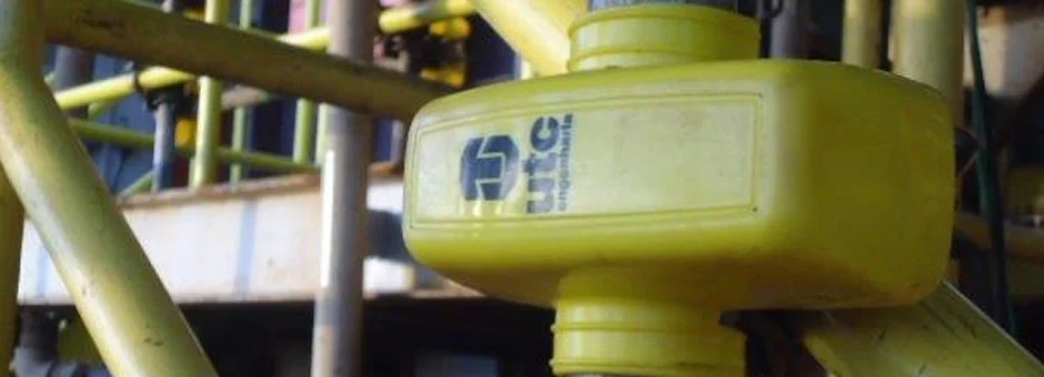 Capa de proteção em polipropileno resistente para braçadeiras de andaimes, dimensões 7x16x8 cm com sobra interna de 1 cm, adaptando-se a todos os tipos. Reutilizável, flexível, atóxica e com tratamento anti-UV, resistente à maresia, químicos e até 135°C. A cor padrão é amarelo segurança, mas pode ser personalizada. Bordas arredondadas garantem segurança, e a fixação ao tubo é rápida e prática por engate.