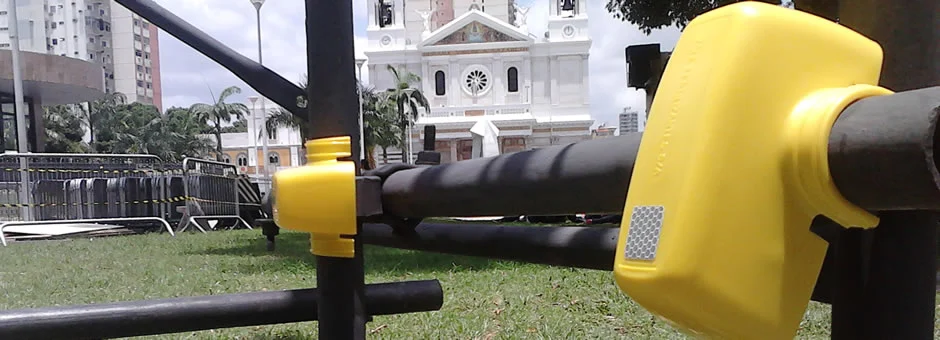 Capa de proteção para abraçadeiras de andaimes que alia segurança e sinalização. Equipadas com adesivo reflexivo profissional, disponível em versões LISO ou TEXTUR COLMEIA, aplicadas sob a capa, aumentam a visibilidade. O modelo mantém a cor padrão amarelo segurança, garantindo destaque na obra, e oferece opções de cores variadas para o adesivo, conforme disponibilidade nacional ou importada.